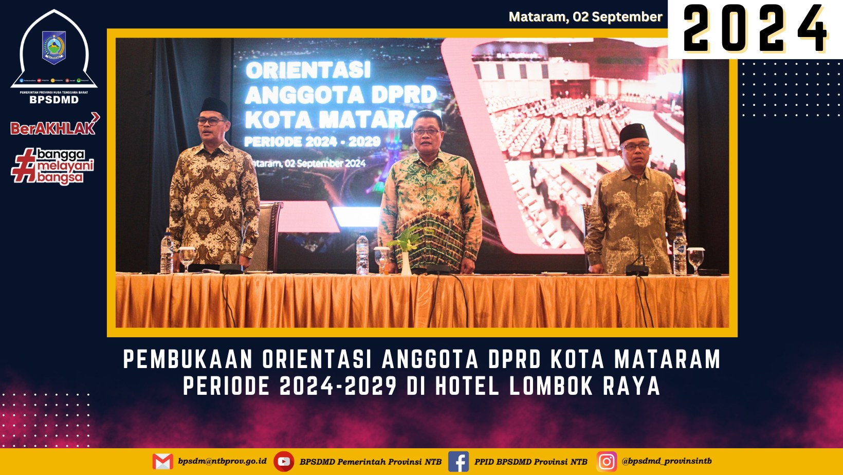 Dengan sambutan yang hangat dan penuh semangat dari Kepala BPSDM NTB, diharapkan para anggota DPRD Kota Mataram dapat memulai masa bakti mereka dengan tekad yang kuat untuk berkontribusi positif bagi masyarakat.