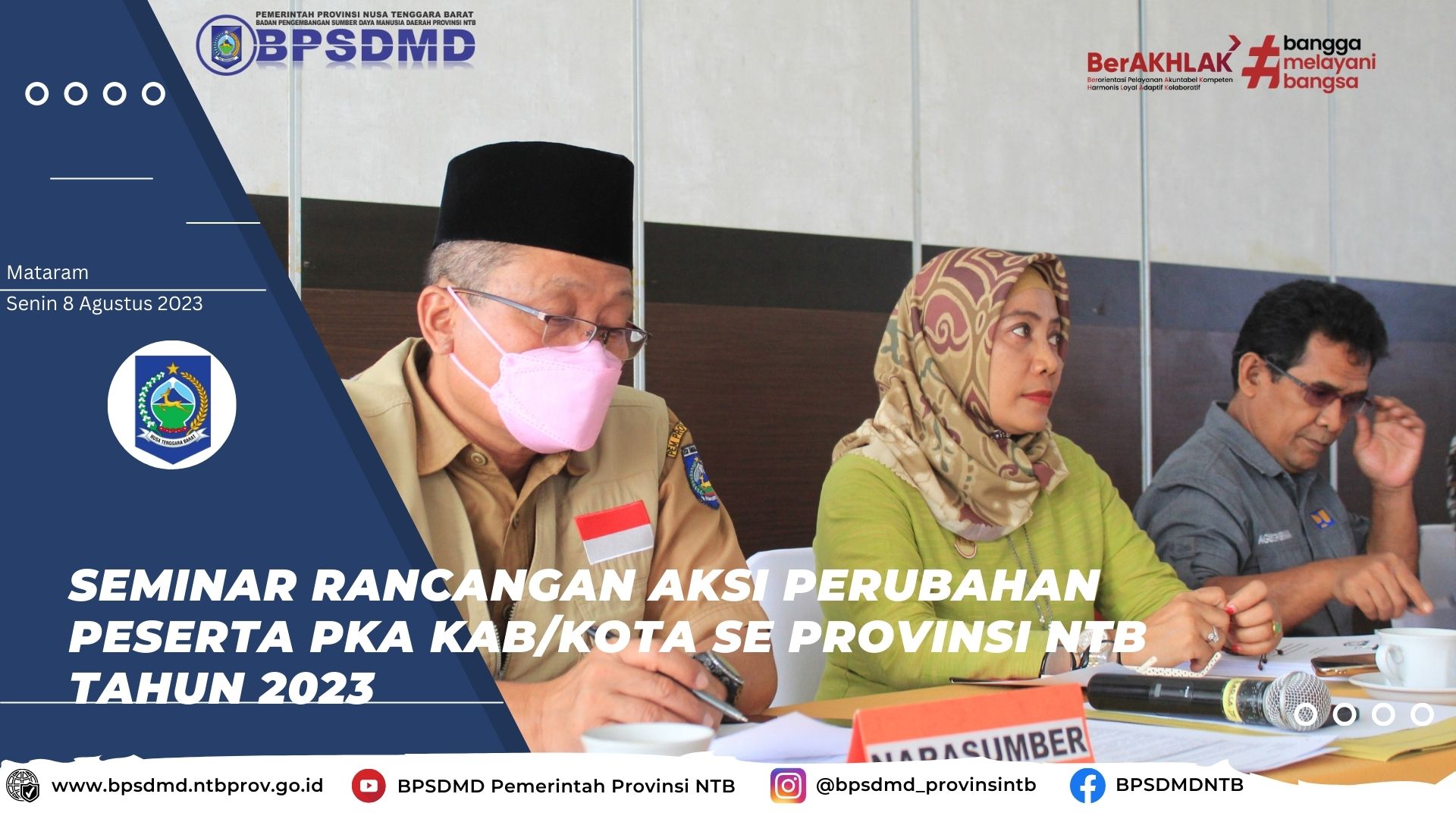 Senin, 07 Agustus Tahun 2023 bertempat di Wisma Tambora BPSDMD Provinsi Nusa Tenggara Barat sedang berjalan kegiatan Seminar Rancangan Aksi Perubahan oleh para peserta PKA (Pelatihan Kepemimpinan Administrator).